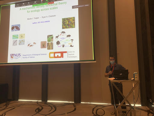 Martin Trappe, a former Senior Research Fellow in our lab, today presented his work on density functional theory for ecology at the Institute of Physics Meeting Singapore 2021. Martin is based at the Centre for Quantum Technologies at NUS, and had a joint appointment in our lab for two years, during which time he was taking the powerful tools of density functional theory from physics and using them to model complex multi-scale ecological systems. His work is available on bioRxiv and is currently undergoing peer review.