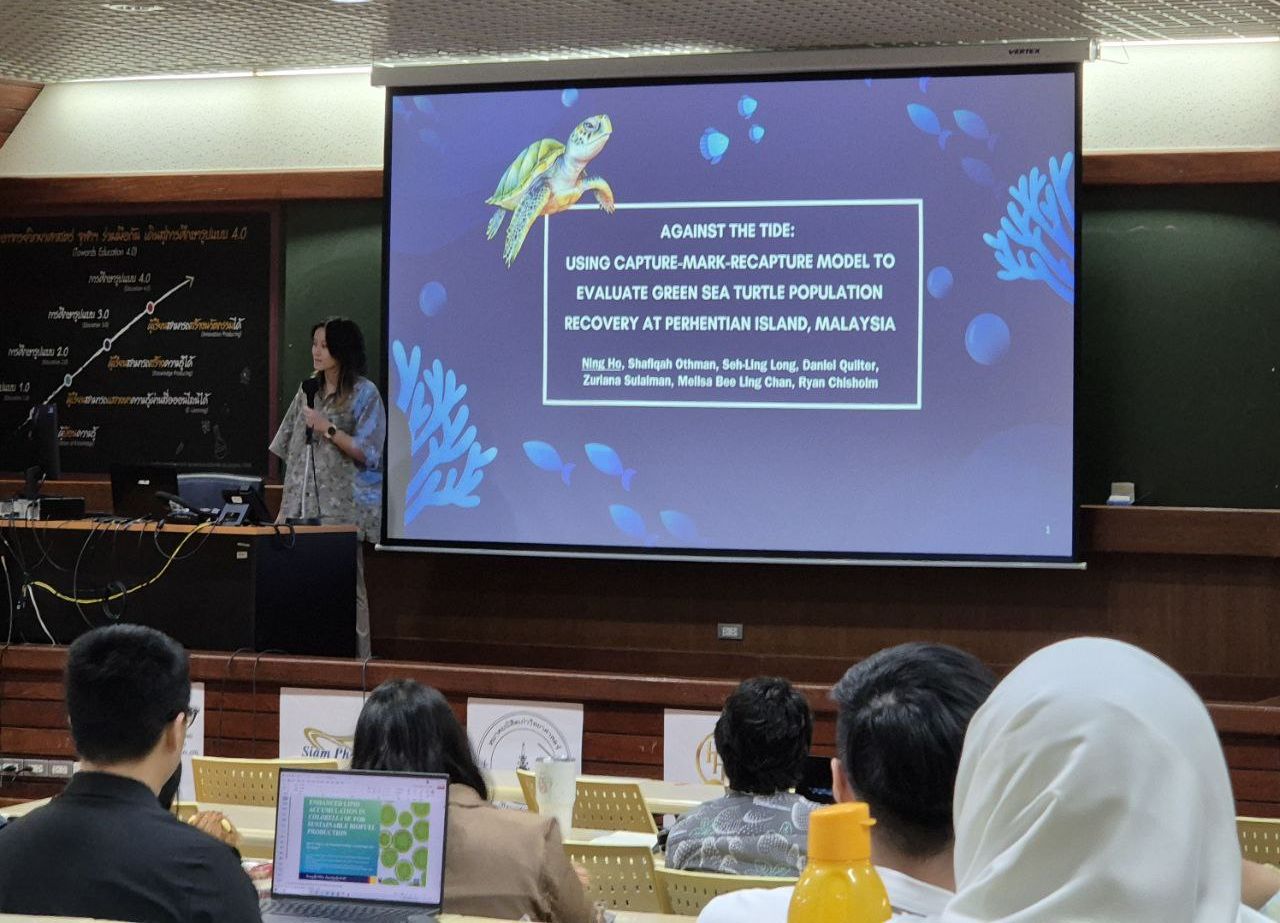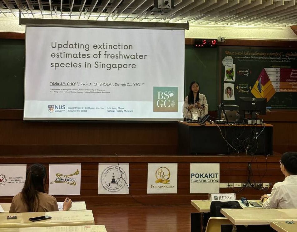 The Biological Sciences Graduate Congress is an annual event bringing together Master’s and PhD students from NUS; University of Malaya, Malaysia; and Chulalongkorn University, Thailand. Ho Ning and Tricia recently attended the 2025 congress at Chulalongkorn University. Ho Ning presented her work on modelling sea turtle population dynamics in Southeast Asia. Tricia presented her work on estimating dark extinctions for freshwater taxa in Singapore.